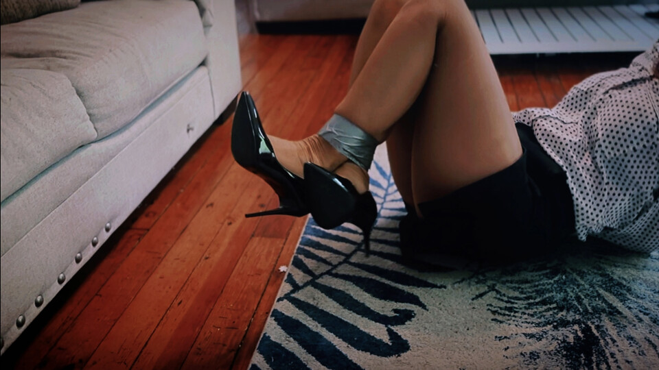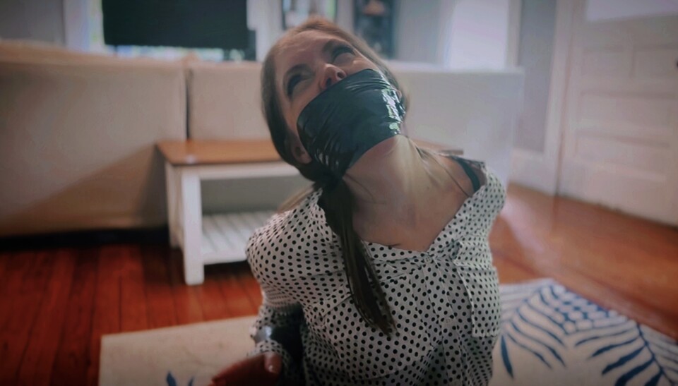 The scene ends with the two of you trying to cooperate, their earlier teasing and blame replaced by a shared sense of fear and exasperation as the intruder’s presence looms over you. Rachel even uses her pantyhose clad feet to try and rub your gag off to call for help but it’s no use.