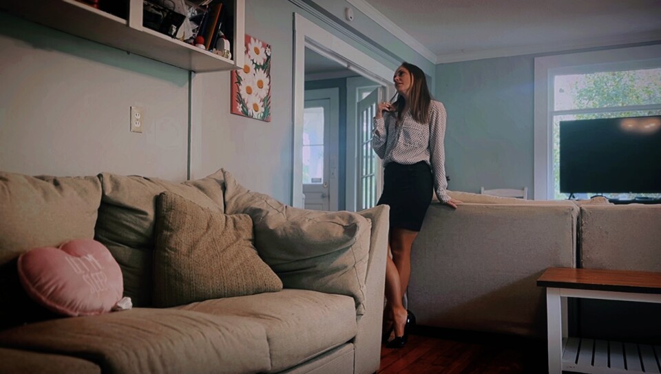 Rachel arrives home from a shopping trip, carrying bags and jokingly waving the household credit cards she used. Believing the situation to be some kind of mistake or overreaction, she initially mocks and scolds you, laughing at the fact that you allowed yourself to be captured. Her tone is sarcastic and dismissive, as if she’s blaming you for the predicament. While Rachel is distracted, the intruder quietly approaches from behind. Before she has a chance to realize what’s happening, she is restrained as well, shocked to suddenly be in the same position as you.