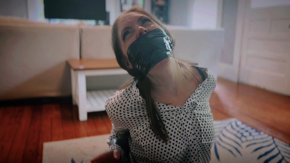 The video unfolds with you, the viewer, as Rachel’s husband, who has been restrained after a home intrusion. The scene opens with you already captured, unable to move, and heavily gagged.