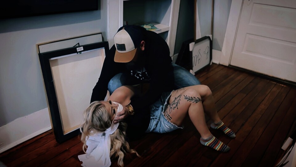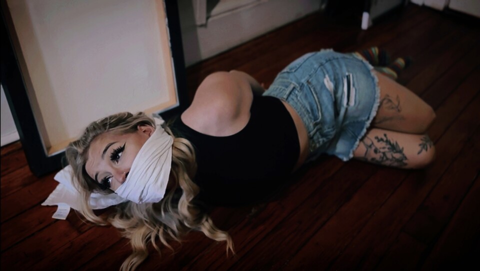 Dragged backward, Phoenix’s phone clatters to the ground, the call still open but her voice silenced. The thieves, startled at first, quickly regain their composure. Recognizing her from earlier tailing attempts, they decide she’s seen too much. She’s bound wrists behind her back, ankles tied, and a tight over-the-mouth gag wrapped around her head to keep her quiet while they argue over what to do with “the snooping girl.”